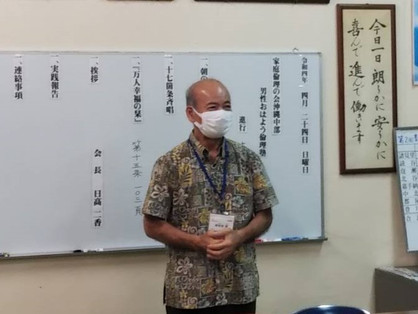始めに、日高二香会長より「4月17日に開催された『未来教育フォーラムin沖縄』に多くの教育関係者が参加し、行政と倫理がつながる橋渡しになると期待されました」と話されました。